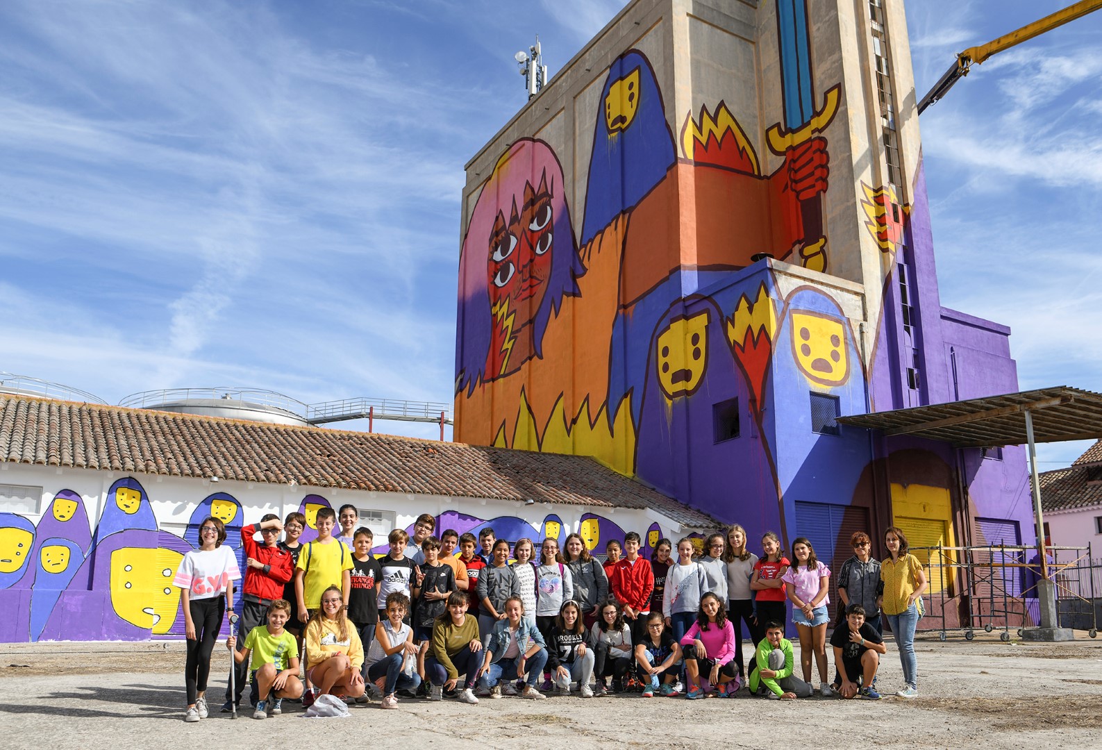 Es de destacar que los fantasmas dibujados en la nave anexa al silo y las casetas independientes fueron pintados por alumnos del Centro Ocupacional, coordinados por el artista y por sus propios profesores. Sin duda, estos chicos y chicas son los verdaderos titanes y valientes de este proyecto.